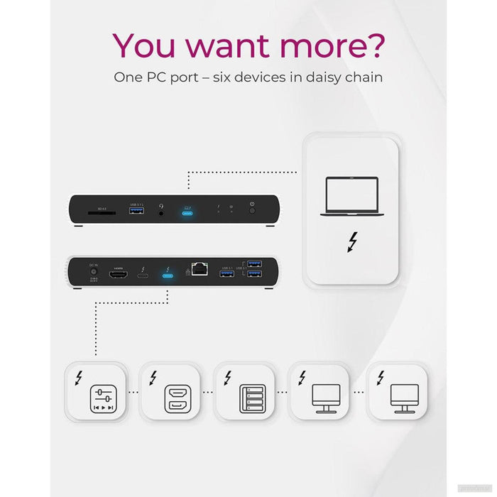 Opremljeni vmesniki Thunderbolt 4/USB4 delujejo z bliskovito hitrimi hitrostmi prenosa 40 Gbit/s in video izhod visoke ločljivosti (en zaslon do 8K@30 Hz).