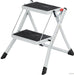 - Kaj dobite_ Zložljivo lestev s 2 stopnjama, ki je lahka, kompaktna in vsestranska ter ima prijemalo za enostaven transport.