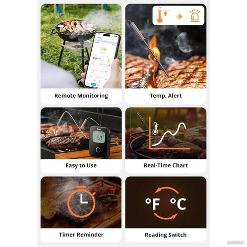Nastavite želeno temperaturo hrane. Ko jo termometer zazna, naprava in telefon sprožita alarm, da se vrnete k žaru in odstranite hrano pravočasno.