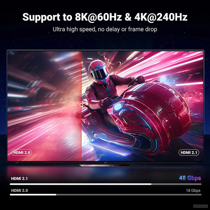 - Podpira najvišjo kakovost slike 8K 60Hz in 4K 240Hz. Pozabite na zamude in padce hitrosti sličic.
