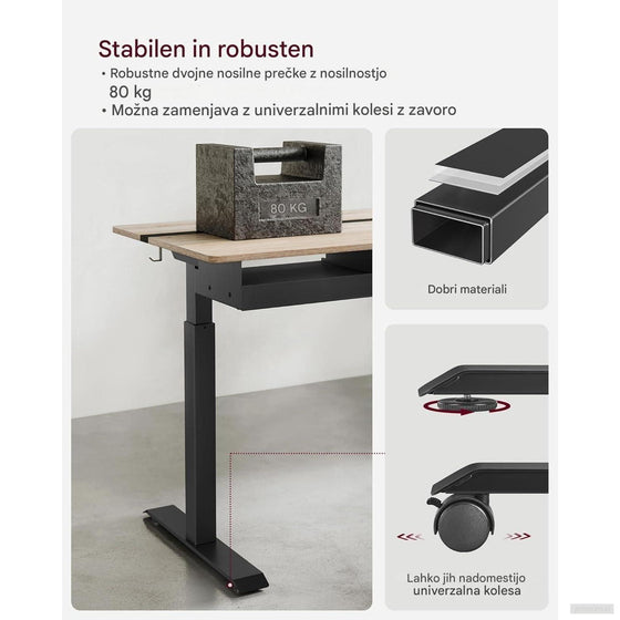 Tiho delovanje_ Motor za prilagajanje višine deluje tiho, kar omogoča nemoteno delo brez motečega hrupa.
