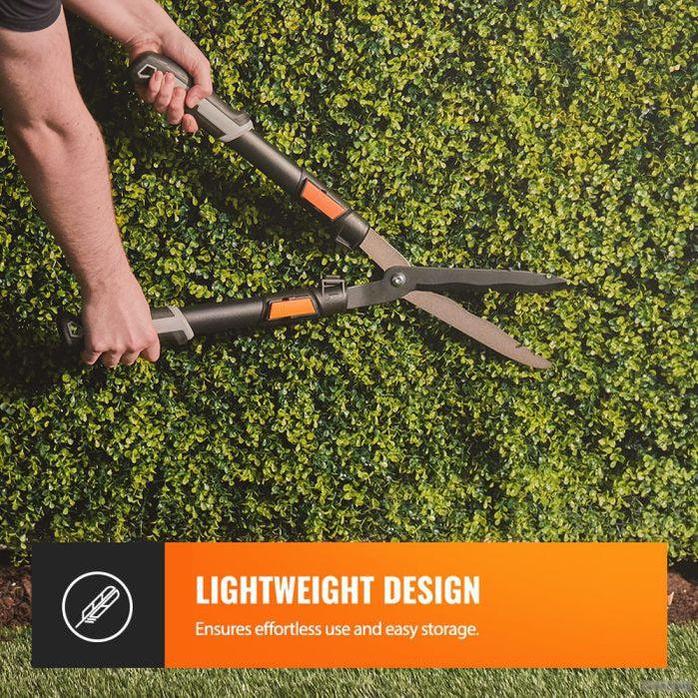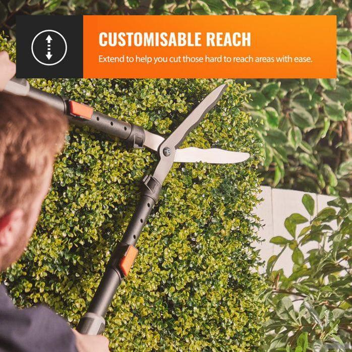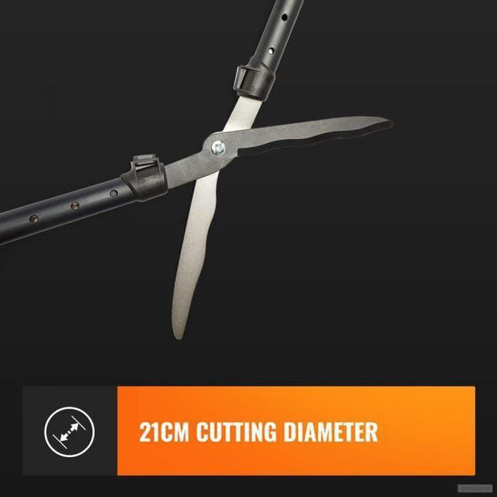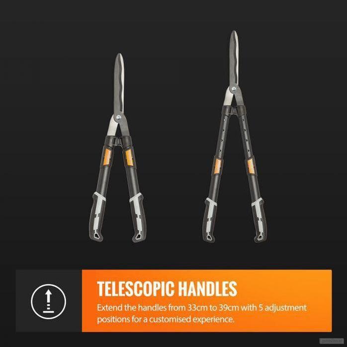 Teleskopske škarje za živo mejo so opremljene z visokokakovostnimi rezili in nastavljivo višino od 64 cm do 110 cm.